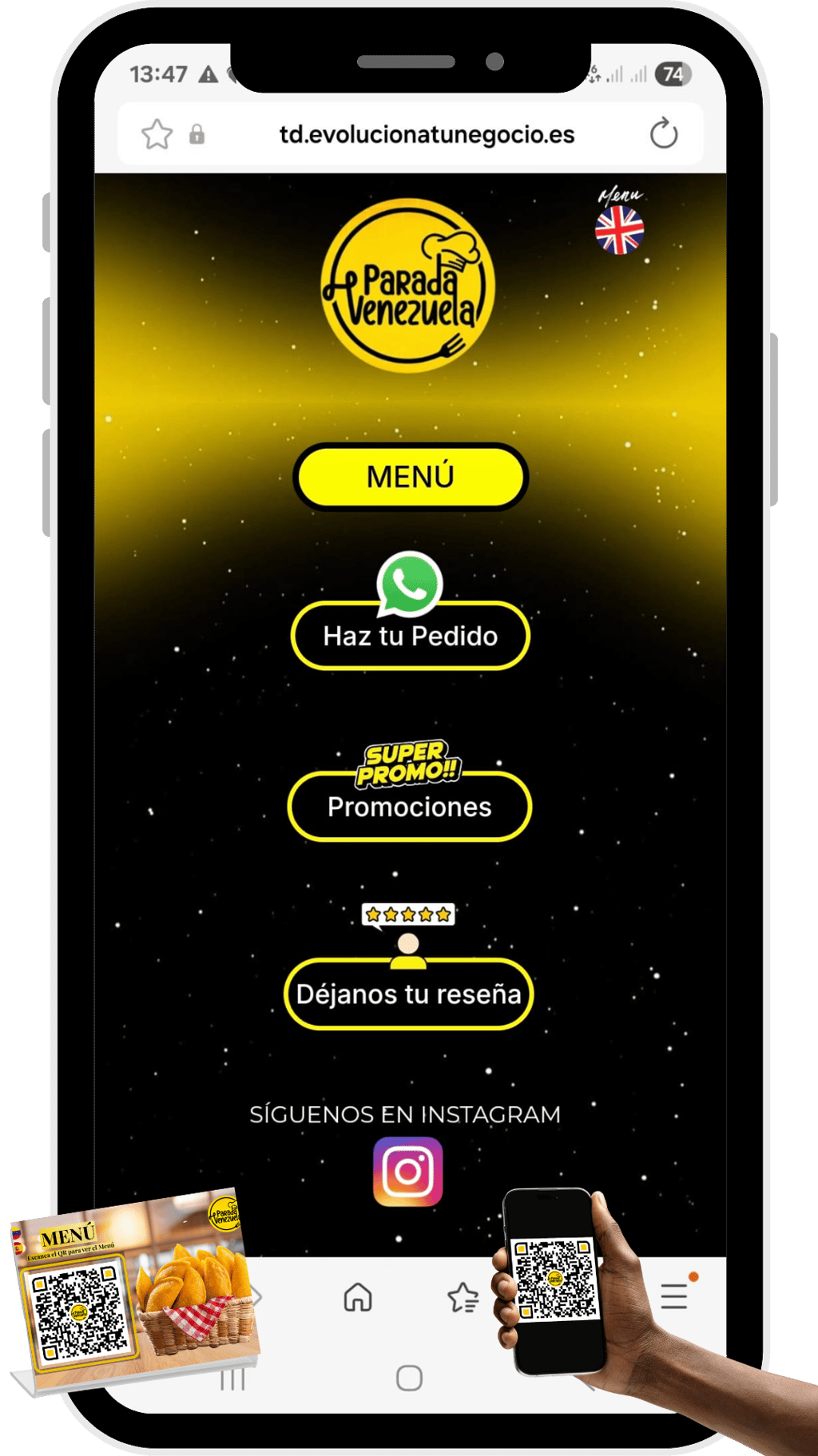 ✅ Código QR personalizado: Diseñamos un QR único para colocar en mesas, mostradores o materiales promocionales.